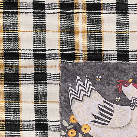 Our Sussex Hen Placemat Set of 4 brings a farmhouse touch to your table. Featuring an appliqued patch with a white Sussex hen surrounded by yellow flowers and buzzing bees!