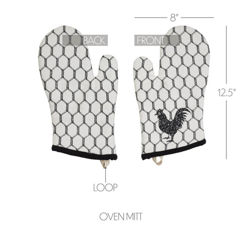 - Farmhouse Inspired: This oven mitt showcases a rooster on a chicken wire background in tones of distressed black and soft white. Part of the Down Home Collection enhancing your kitchen with charming country and farmhouse style.