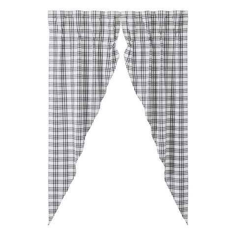 Bring a farmhouse mood to your window with the Farmstead Black Plaid Long Prairie Curtain Set of 2 84x36x18. Featuring country black woven into soft white cotton base fabric. This farmhouse curtain is lined with white cotton to reduce fading and light penetration and finished with a standard .5 inch hem fold along the inner edge.