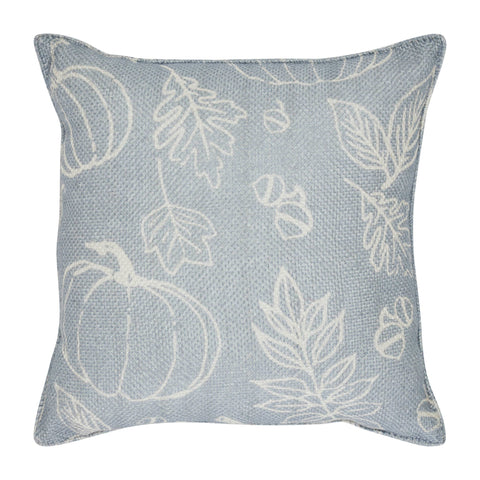Modern style gets a durable finish with this unique indoor/outdoor fall throw pillow. The Silhouette Pumpkin Pillow 14" is constructed with a water-resistant recycled plastic fabric that allows the fall accent piece to safely be displayed inside or outside. Create the perfect fall entryway with a modern shade of dark, warm grey printed with a soft cream pattern of pumpkins, leaves and acorns. Spot clean as needed.