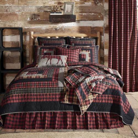 Bring log cabin charm into the home with the Boone Trace Quilt. Chili pepper reds, caviar blacks, and natural tans make the Boone Trace Quilt a woodcutter's dream. Perfect for your country, primitive and log cabin home decor.