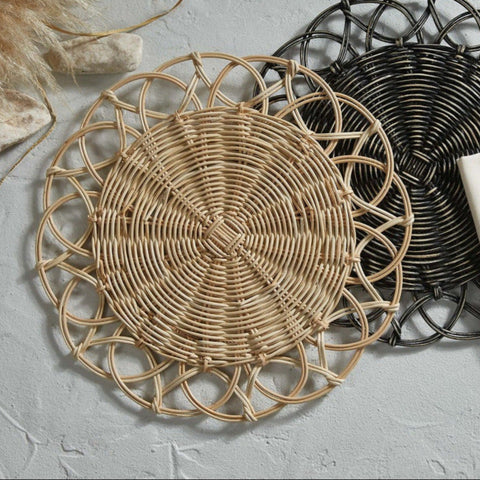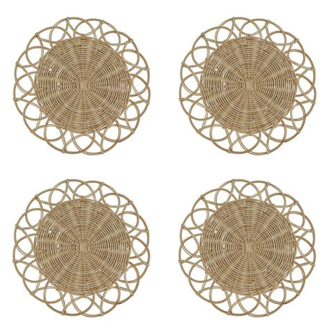 Full of charm, our Loop Natural Round Charger plate set of 4 adds a rustic element to your table setting with a neutral tone that allows for an easy blend in a variety of table settings throughout each season. Expertly crafted from a durable rattan construction that is made to last. Enhance your everyday table decor by layering this charger base with a dinner plate arrangement that also offers a practical purpose as a functional protective barrier to your tabletop surface.