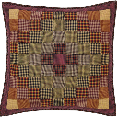 The Heirloom Farm Quilted Euro Sham is decorated with cascading blocks of various crimsons, mustards, and black for a visually mesmerizing and enticing look. The cascading blocks are then beautifully framed by thick channel bordering.