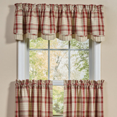 The Hawthorne Layered Valance provides the perfect window treatment for your farmhouse country home, with the striking rusty red, cream, mustard and gray color palette! Perfect on their own, or pair with coordinating tiers.