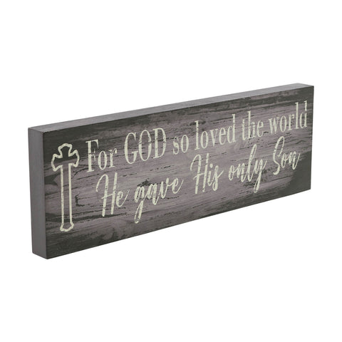 The Celebrate Grace For God So Loved The World Distressed Grey Wall Sign is a profound addition to your spring and Easter decor, embodying a message of faith and devotion. Measuring 5x15 inches, this elegant sign features the impactful phrase, "For God so loved the world He gave His only Son," in crisp white lettering. Accompanied by a subtle outline of a cross, this inspirational text stands out against a weathered grey background, creating a striking contrast that enhances its spiritual significance. Crafted from MDF and adorned with a digital print, this wall sign boasts a distressed appearance that adds a touch of rustic charm to any space. The combination of dark grey and antique white tones contributes to its farmhouse and country appeal, seamlessly integrating into various decor styles. Its timeless message and classic design make it a meaningful focal point for your home, reflecting Christian values with grace and elegance. Perfect for display in any room, whether it's your entryway, living room, or kitchen, this sign offers both visual appeal and spiritual inspiration. The sign's durable construction ensures it withstands daily wear, while its easy-to-clean surface allows for hassle-free maintenance. The Celebrate Grace For God So Loved The World Distressed Grey MDF Wall Sign is a beautiful way to celebrate faith and elevate your spring decor with a message of love and hope.
