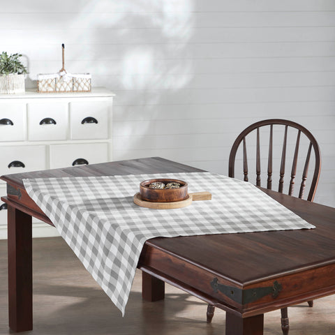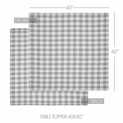 - The Grace Ann Buffalo Check Grey Table Topper, measuring a generous 40x40 inches, adds a farmhouse-style touch to your kitchen and dining room decor.