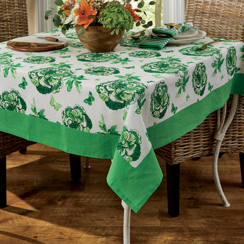 Perfect for adorning your spring and summer dining table, our Greenway Tablecloth features butterflies & flowers surrounded by a solid green border. A perfect finishing touch, an ideal addition to farmhouse or country decor, but versatile enough to be easily incorporated into any home style.