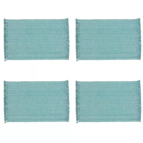 A soothing solid design in shades of blue. The Heathered Water Blue Placemats are a combination of three color hues to create this beautiful heathered look that can easily blend with many home decor trends. The versatile style makes them well-suited to both every day and special-occasion meals, providing an absorbent tool for your family and guests to use time and time again. SET of 4.
