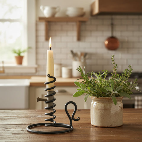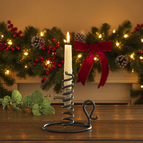 Our Adams Courting Candlestick is hand forged and uniquely designed to provide a primitive and timeless touch to your home. Expertly crafted with sturdy metal construction, this candlestick adds the finishing touches to any room while capturing a sense of rustic history. Candle is not included.