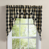 Baxter Burlap with Black Stars Prairie Swag Curtains