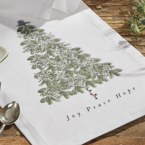 Add an elegant holiday touch to your table with our Everlasting Christmas Table Runner 54". 100% cotton.