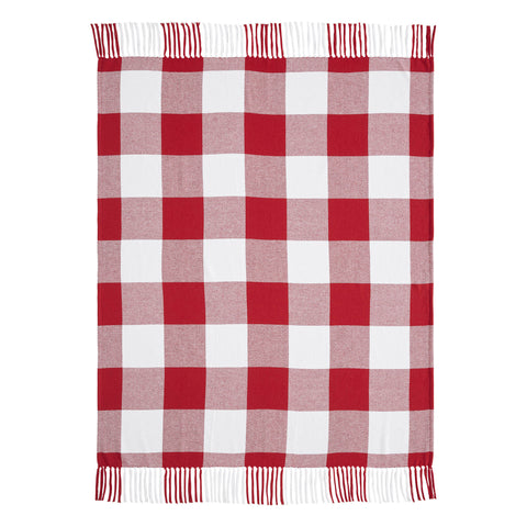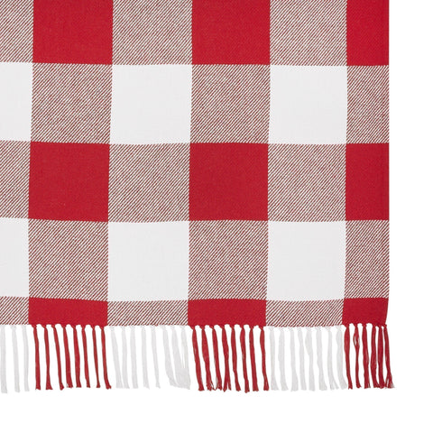 Whether draped over the back of chair or keeping you cozy, this classic plaid throw blanket will add a sophisticated style wherever it lands. The Cherry Ann Check Woven Throw measures 50x60 inches and is constructed with a durable cotton polyester blend. This throw features classic red and white checks for a timeless plaid design. The tasseled throw blanket is perfect for holiday decor or year-round farmhouse style. Coordinates with the Cherry Ann Check Collection for all of your holiday farmhouse needs.