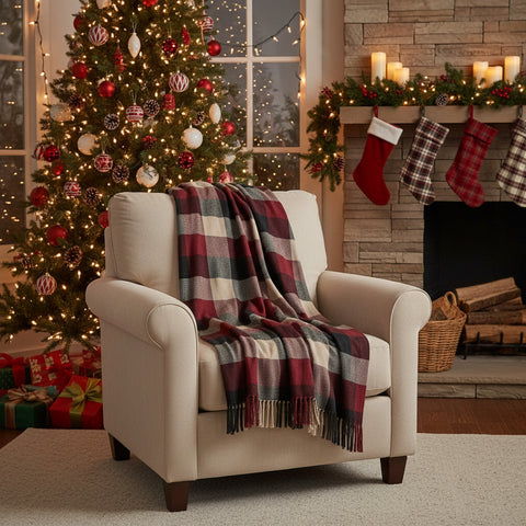 Elevate the charm of your home with the Heirloom Farm Primitive Check Woven Throw. This blanket is a perfect addition to your bedroom and living room decor, capturing the essence of primitive and country style. The deep burgundy hue and classic check pattern evoke a timeless, rustic appeal that complements your interior design effortlessly. The textured twill weave fabric adds depth and character, creating an inviting atmosphere in your living space. Whether draped over furniture or used as a cozy layer, it not only enhances the aesthetics of your room but also keeps you warm during chilly evenings. With its enduring charm and textural elements, this throw is a delightful addition for those who appreciate the rustic elegance of country and primitive design. Whether used as a decorative piece or for added warmth, this throw captures the enduring charm of country and primitive design.