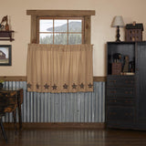 Baxter Burlap with Black Stars Tier Curtains 36"
