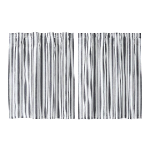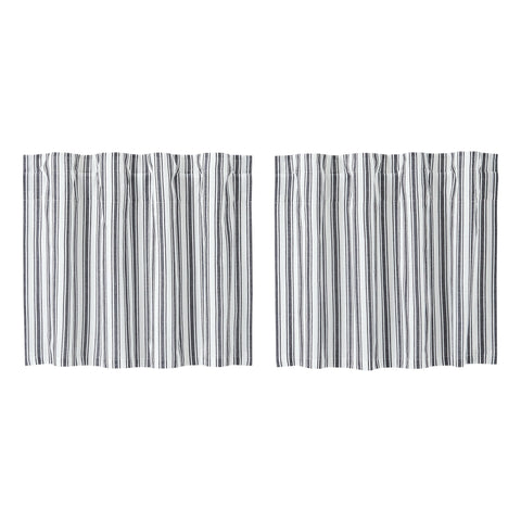 Bring a farmhouse mood to your window with the Farmstead Black Ticking Stripe Tier Set of 2. Featuring repeating, country black ticking stripes woven into soft white cotton base. This farmhouse tier curtain is lined with white cotton to reduce fading and light penetration; finished with a standard 3 inch hem fold at the bottom to complete the farmhouse look.