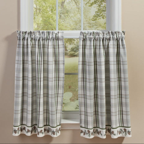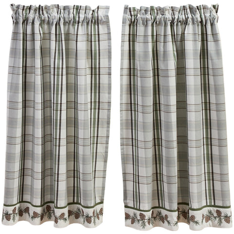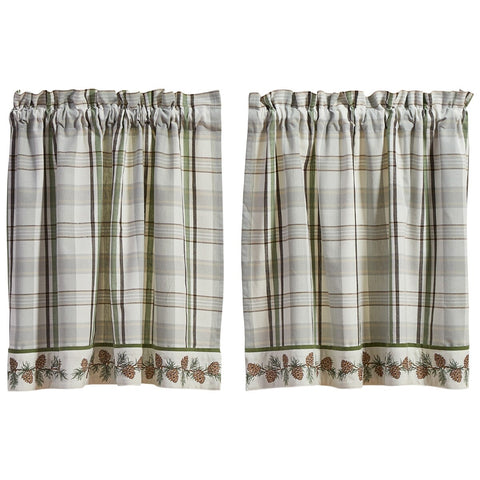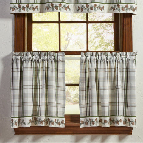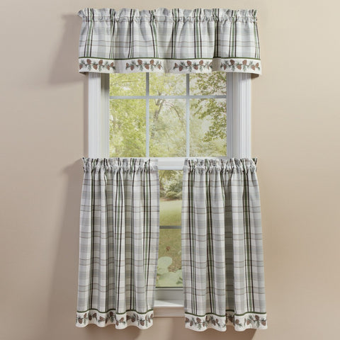 Add a touch of classic, farmhouse style to your window with the Ponderosa Pine Tiers. Displaying exquisite, classic design with grey, white, brown and green plaid, the tiers are perfect for your updated country style home. Curtains include rod pocket for easy hanging. Unlined. Set of 2 Tiers. Valance & Swags sold separately.