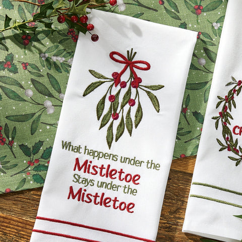 Welcome the Christmas season into your home with our embroidered Christmas Berry Decorative Dishtowels. Choose from 2 different christmas berry designs. The Mistletoe or Wreath will add a charming touch to your home.