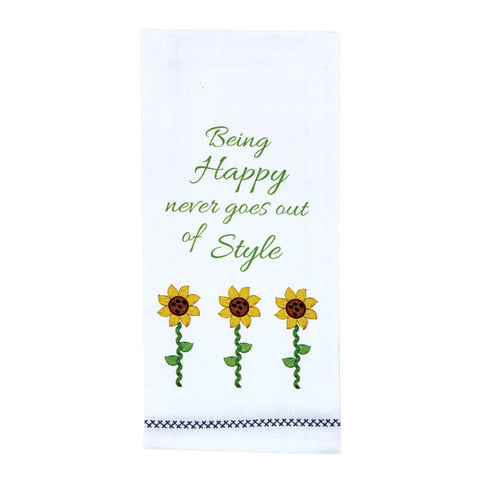 Being happy never goes out of style—and neither does this charming dishtowel. Featuring cheerful sunflower embroidery and cross stitch accents that brings warmth to your kitchen, this everyday essential pairs perfectly with your décor. Soft, absorbent, and ready to brighten meal prep and cleanup moments alike. A feel-good addition to any home or a thoughtful gift for someone who appreciates a little sunshine in their routine.