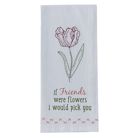 Our If Friends Were Flowers Dishtowel features an embroidered design with flowers and "If Friends were flowers I would pick you" embroidered sentiment. What a wonderful gift for your friends!