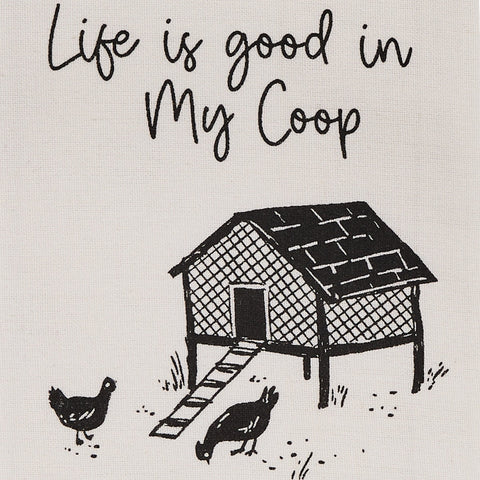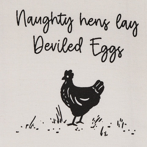 Add a charming fun touch to your country kitchen with our Naughty Hens & My Coop Towels. SOLD SEPARATELY. One towel features the saying "Naughty Hens Lay Deviled Eggs" and the other towel says "Life is Good in My Coop".