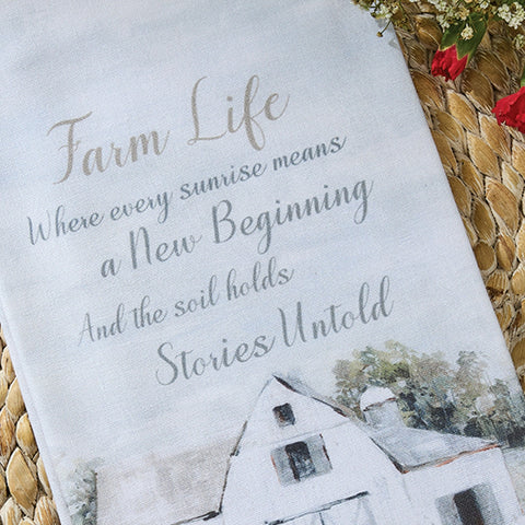 Our Goodwin Farm Dishtowel features an heartwarming design with a barn, flowers and "Farm Life where every sunrise means a new beginning and the soil holds stories untold" sentiment.    What a wonderful gift for your friends too!