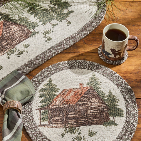 Protect your kitchen counters and table in farmhouse style with our Secluded Cabin Braided Coaster Set of 4. These 4" inch rustic table coasters are the perfect feature to stop heat from hot pots and pans from destroying a valued table or countertop. The charming depiction of a scarecrow is the perfect way to add style to your fall decor! Set of 4.