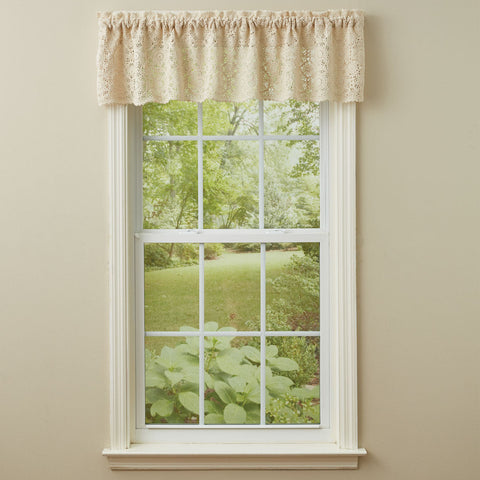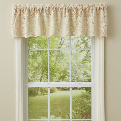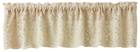 Top off your window with a comforting touch of the Cream Lace Valance. The texture captures the beauty of a timeless look in your home with this cream lace window accent. Simply beautiful! The Valance is perfect on its own, and being a neutral color, it will fit in with so many types of decor! Add this piece to your space to introduce a fresh look without having to redecorate the entire room. Unlined.