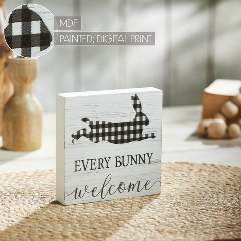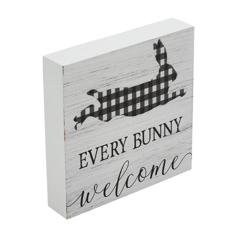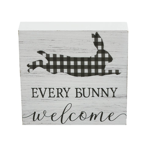 Bunny Hop Every Bunny Welcome Buffalo Check Block Sign