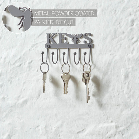 Enhance your home decor with the charming Buzzy Bees Metal Wall Mount Bee Key Holder, a perfect blend of functionality and style. Measuring 3x5.35 inches, this key holder features a unique design where the word "Keys" is creatively displayed, with a honey bee replacing the letter "y." The piece is crafted from durable metal in a vintage grey finish, giving it a distressed, farmhouse aesthetic that complements a variety of interior styles. This wall-mounted key holder is not just a practical solution for keeping your keys organized but also a delightful piece of spring decor. The honey bee detail adds a whimsical touch, making it a great addition to your entryway, kitchen, living room, or any other space where you want to infuse a bit of country charm. The solid color and distressed appearance blend seamlessly with rustic or country-themed interiors, making it an ideal choice for those who appreciate a touch of nostalgia in their home decor. Installation is straightforward, with all necessary hardware included in the packaging, ensuring you can easily mount it wherever you need.