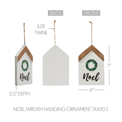 - Presenting the Noel Wreath Hanging Christmas Ornament, a charming addition to your holiday decor crafted from tropical wood, adding a rustic farmhouse touch to your Christmas tree.