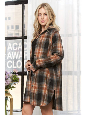 Add a splash of color to your wardrobe with the Button-Down Flannel Shacket. Perfect for chilly winter days, it makes a statement without compromising on comfort - guaranteed to keep you feeling warm and looking stylish.