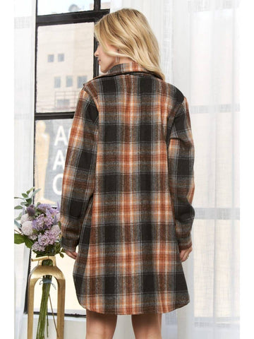 Button Down Flannel Shacket - Rust