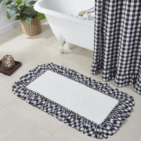 Add a farmhouse touch to your farmstead bath or living space with the Sable Ann Buffalo Check Bathroom Rug Mat. This comfortable mat showcases beautiful concentric hues of black and soft white. With a ruffled edge, ruched ruffle, and tufted weave, this check bath mat will find a place in your home for years to come. Reverses to a solid tan rubber underside to prevent slippage.