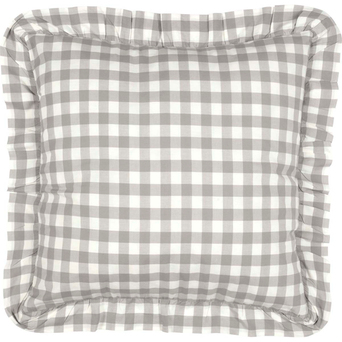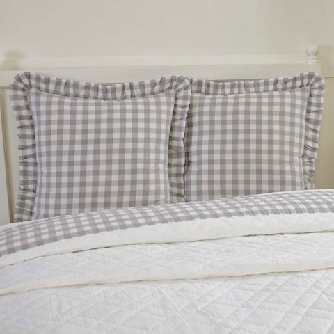 The Grace Ann Buffalo Check Grey Euro Sham is a fresh and lighthearted piece tailored to complete the look of your laid-back farmhouse bedroom. Patterned with grey checks, and trimmed with gathered ruffles. 100% cotton. Reverses to same as front.