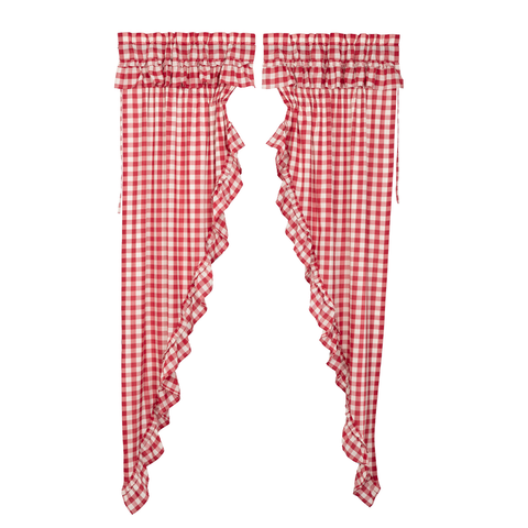 Add a touch of classic, farmhouse style to your window with the Cherry Ann Red Buffalo Check Ruffled Long Prairie Curtains Set of 2 84x36x18. Displaying exquisite, modern design with large scale red and white checks, perfect for your updated country style home. Curtains include rod pocket for easy hanging and drapes beautifully with a ruffled edge. Includes 2 matching drawstring ties. Lined with white cotton.