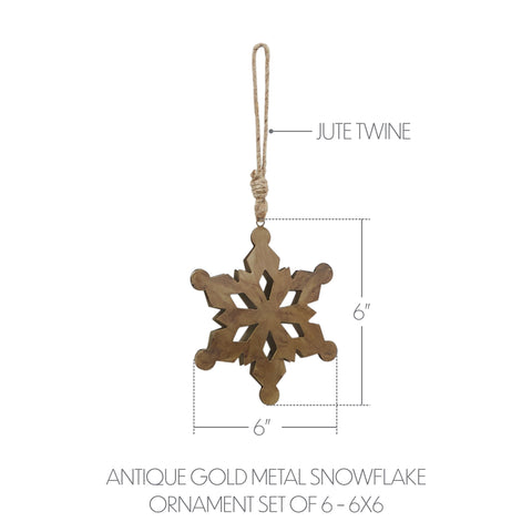 Antique Gold Metal Snowflake Ornament Set of 6 – Lange General Store