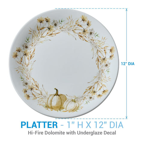 Serve your guests in charming cottage style with the ceramic stoneware Autumn Harvest Platter. Featuring a fall pumpkin/leaves decoration, it's perfect for your country home or as a gift.