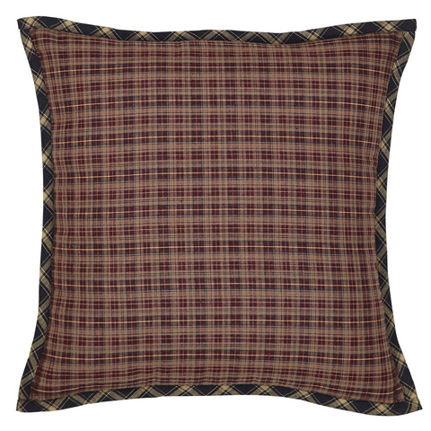 With bold rust, brown, and gold plaid, the Brick Raven Fabric Filled Pillow 16x16 is a statement in country charm. The pillow is tastefully bordered with a straight edge black and creme plaid binding. Reverses to two tie closures.