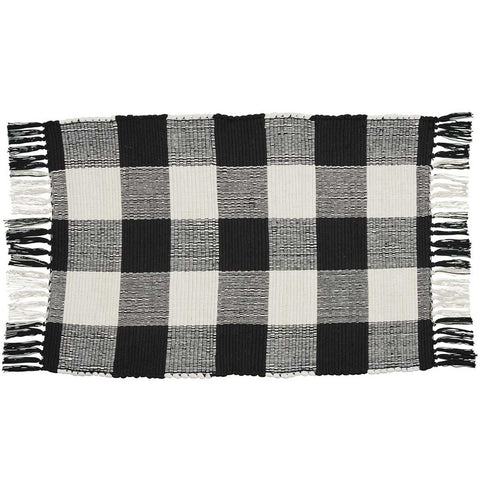 Add country sophistication and comfort to your bathroom, kitchen, or living area with the Black and Antique White Check Rectangle Rag Rug. Features a versatile black and Antique White pattern with tassels at each end.   The perfect rug for all types of decor...suitable for all styles from farmhouse, shabby chic to modern!