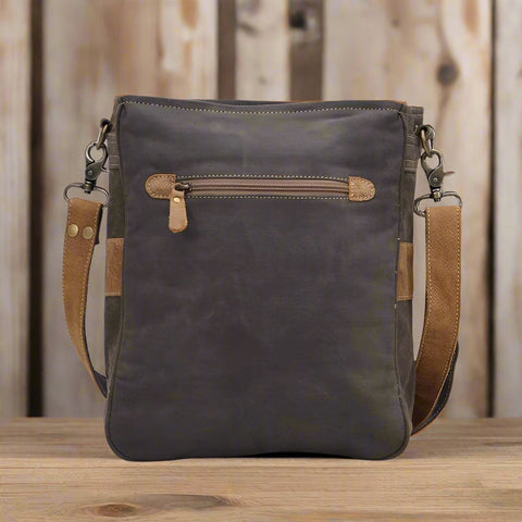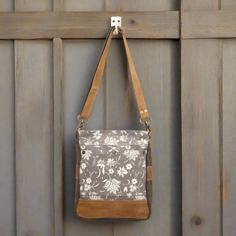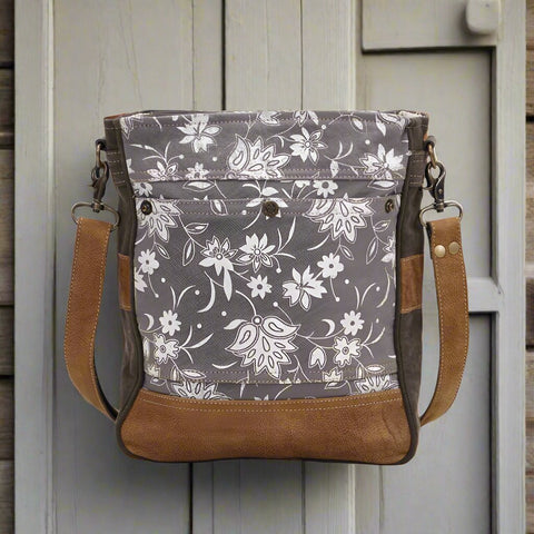 The Greysom Shoulder Bag by Myra features a unique blend of leather and upcycled canvas. With crafty, little inside pockets and a zipper at the back, the grey blossom design is the perfect blend of simplicity and modernity that will surely enhance your style.