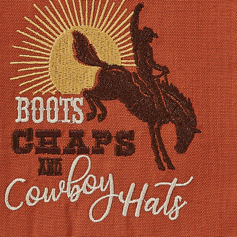 Add a charming country touch to your kitchen with our Boots Chaps & Cowboy Hats Dishtowel. Features a Cowboy theme. This dish towel also makes a great gift!