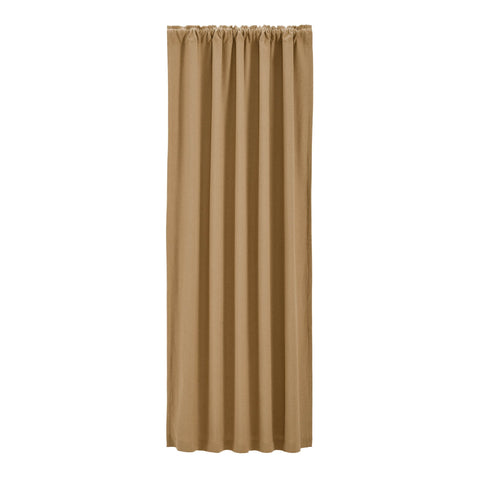 Deep, natural tan burlap creates the perfect accent to your vintage farmhouse window decor. The Burlap Natural Blackout Panel includes a single 84x50 inch cotton window panel with a matching tie back. The room darkening panel includes a blackout lining crafted from 100 percent polyester to add practical benefits without sacrificing style. The panel is easy to hang with a generous 3.25 inch rod pocket with a 2 inch header. Machine washable and iron safe.