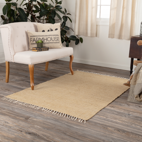 Upcycle your style with the all-cotton area Burlap Natural Chindi Rag Rug . We use leftover burlap "chindi" pieces, twisted and braided, for a neutral eco-friendly rug with variations in the colors of the burlap giving textural interest. Bound with creme cotton threads which are also the tassels seen on each short end.