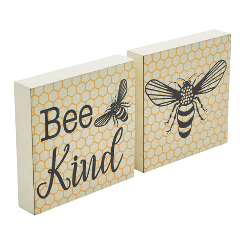 - Charming Set: Includes two distinct MDF blocks featuring "Bee Kind" with a honey bee on one and a single honey bee on the other.