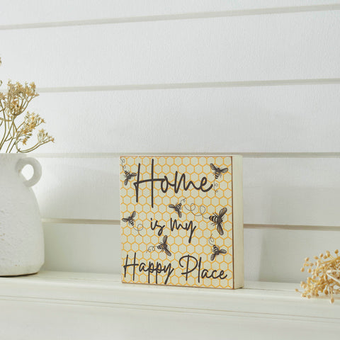 Infuse your space with a touch of springtime cheer using the Buzzy Bees Home Is My Happy Place Block Sign. This charming 6x6 inch block sign showcases the heartwarming phrase "Home is my Happy Place," accompanied by delicate grey honey bees that bring a touch of whimsy. The design is set against a backdrop of yellow and antique white honeycomb pattern, featuring distressed edges that add a rustic, farmhouse-inspired appeal. Crafted from high-quality MDF, this block sign combines durability with aesthetic charm. The digital print captures a harmonious blend of soft yellow, storm grey, and antique white, creating a versatile decoration that complements a variety of interior styles. The distressed appearance enhances its vintage appeal, making it a perfect fit for country and farmhouse settings. Ideal for any room in your home, this sign can brighten up bathrooms, bedrooms, dining rooms, entryways, kitchens, and living rooms.