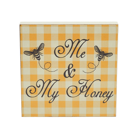 Celebrate the charm of spring with the Buzzy Bees "Me & My Honey" Block Sign. This delightful 8x8 inch sign features the affectionate phrase "Me & My Honey," accompanied by buzzing bees, rendered in soft grey. Set against a plaid background of soft yellow and antique white with worn edges, it captures a heartwarming blend of rustic farmhouse appeal and cheerful springtime vibes. Crafted from durable MDF, this sign is designed to add a touch of country charm to your decor. The digital print showcases the gentle hues of soft yellow, storm grey, and antique white, providing a soothing and inviting feel to any room. The distressed appearance enhances its vintage appeal, making it a lovely addition to your farmhouse-style home.
