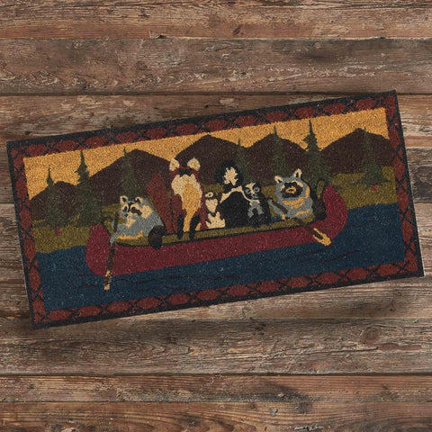 Bring outdoor and cabin charm to your entry door with the Canoe Full Door Mat. This eco-friendly coir coconut fiber door mat features a canoe full of woodland animals. Durable bristles absorb moisture & trap dirt.