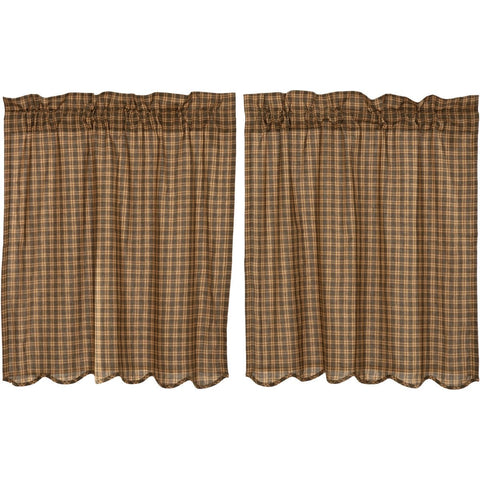 Embellish your nature-inspired, cabin home with the Woodsy Ridge Scalloped Tier Set. These rustic tier curtains feature a woodsy plaid, bringing a casual, relaxed appeal to any room. Lined with cotton, our country curtains protect your eyes from the glare of the sun and come with a rod pocket as well as hanging loops for convenience. The scalloped edges lend a pleasing, soft quality to your windows.