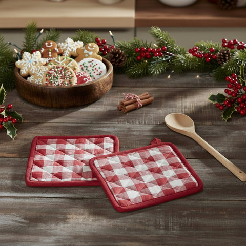 - Farmhouse Kitchen Essentials: Enhance your farmhouse kitchen decor with the Cotton Pot Holder Set of 2 from the Cherry Ann Check Collection.
