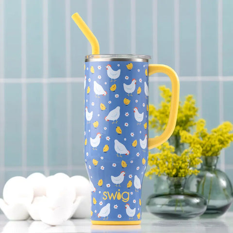 Mega sips, Mega chills! Hydrating has never been easier with our 30oz Mega Mug! The cup holder friendly frame, comfort-grip handle and flexi-tip straw with a standard, plastic straw base come together to create their new favorite Swig!